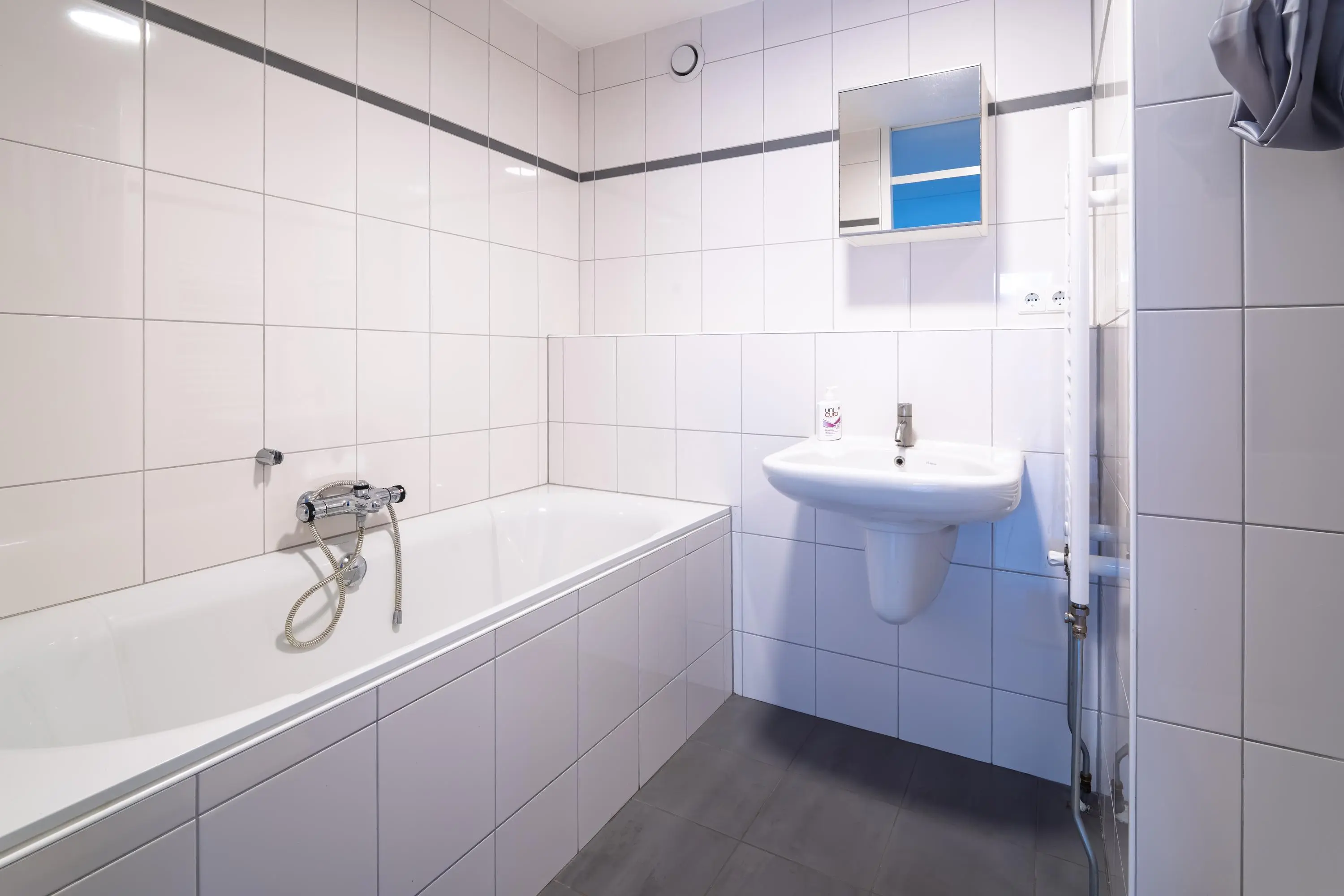 Een groot pluspunt van de woning is de slaapkamer op de begane grond met en-suite badkamer, waarmee gelijkvloers wonen tot de mogelijkheden behoort. De slaapkamer heeft via een schuifpui direct toegang tot de achtertuin. De aangrenzende badkamer is functioneel ingericht met een ligbad, douche en wastafel en sluit daarmee goed aan op het dagelijkse wooncomfort.