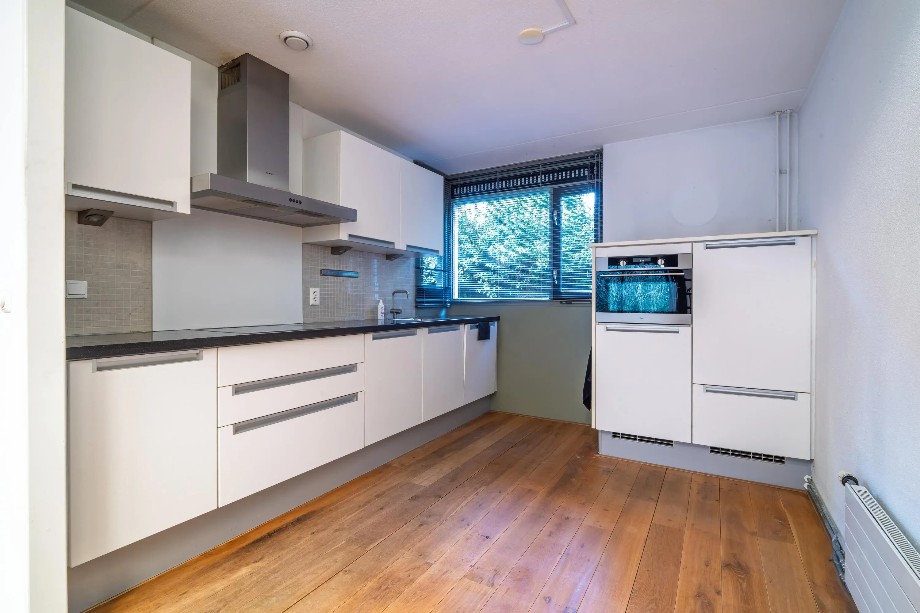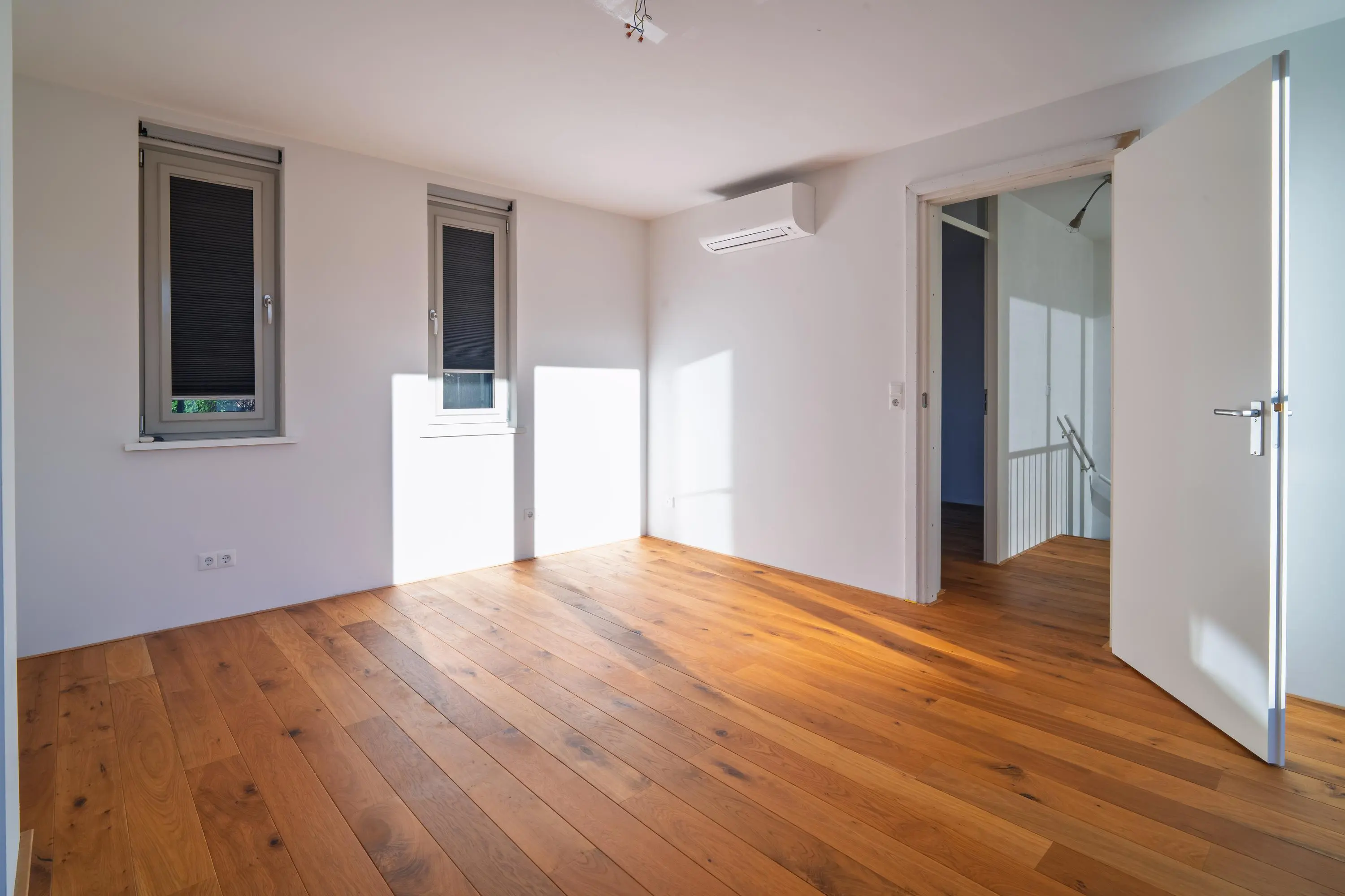 Op de verdieping bevinden zich nog twee slaapkamers, beide van goed formaat en netjes afgewerkt met lichte wanden en een eikenhouten vloer. Een bijzonder pluspunt is de master bedroom, die nog geen twee jaar geleden is gerealiseerd door middel van een opbouw. Deze ruime slaapkamer is daarmee volledig nieuw ten opzichte van de oorspronkelijke woning en biedt extra wooncomfort. De kamer is voorzien van kunststof kozijnen met isolerende beglazing en een airconditioning.