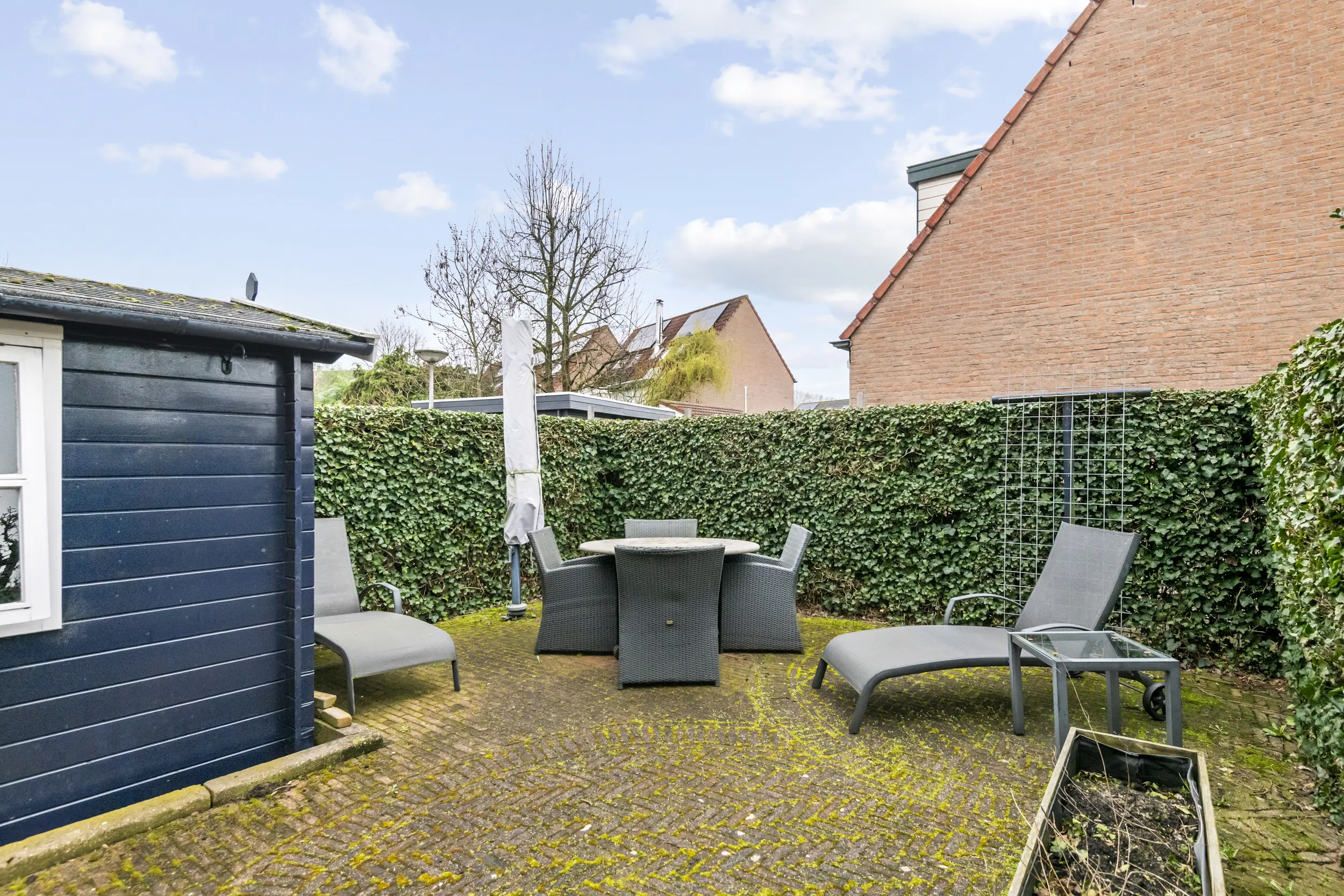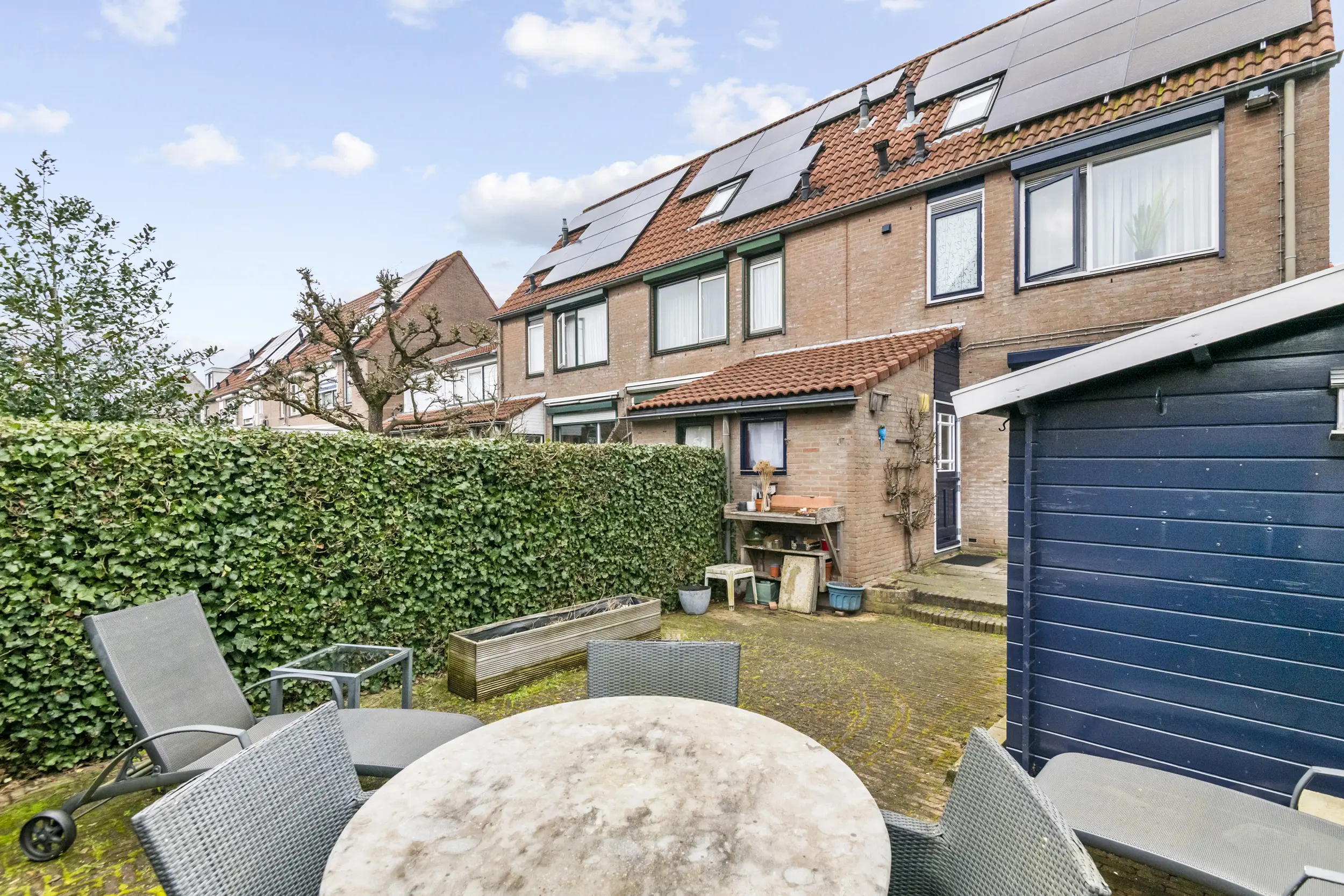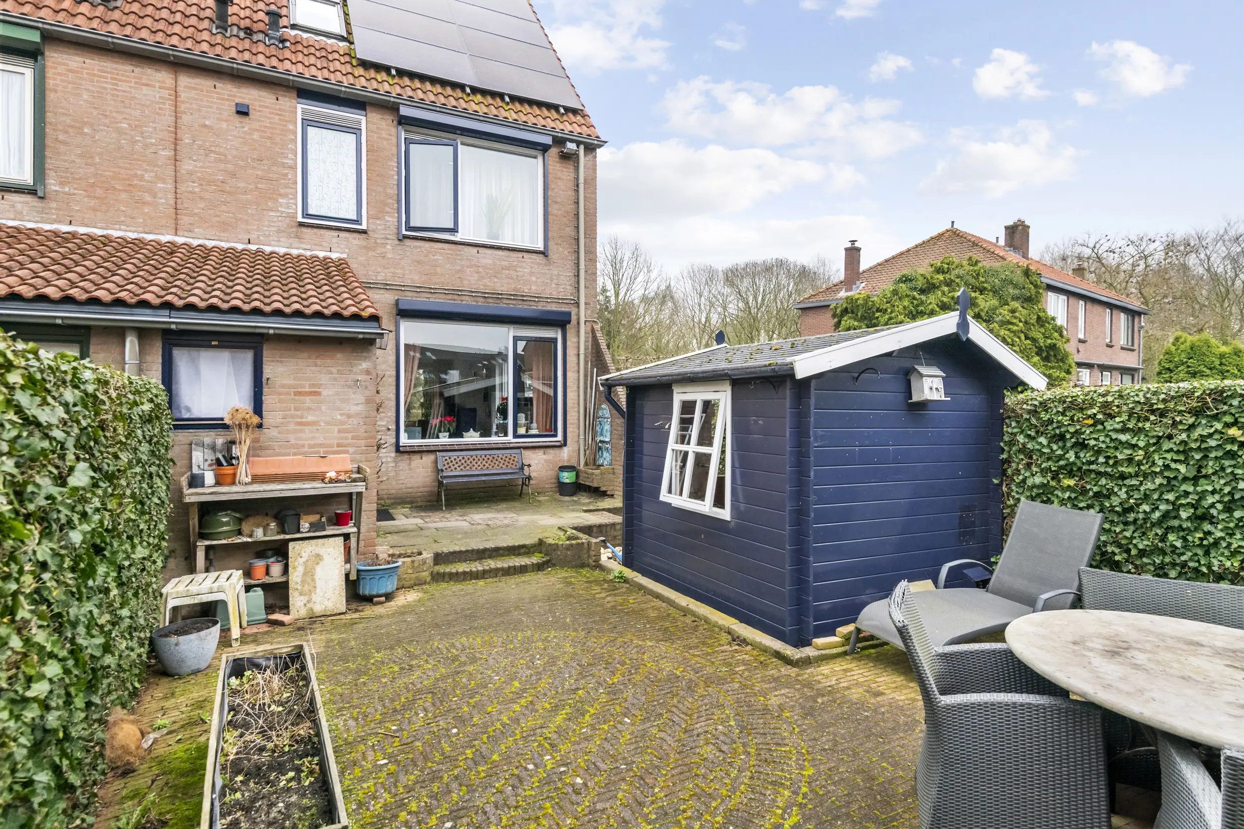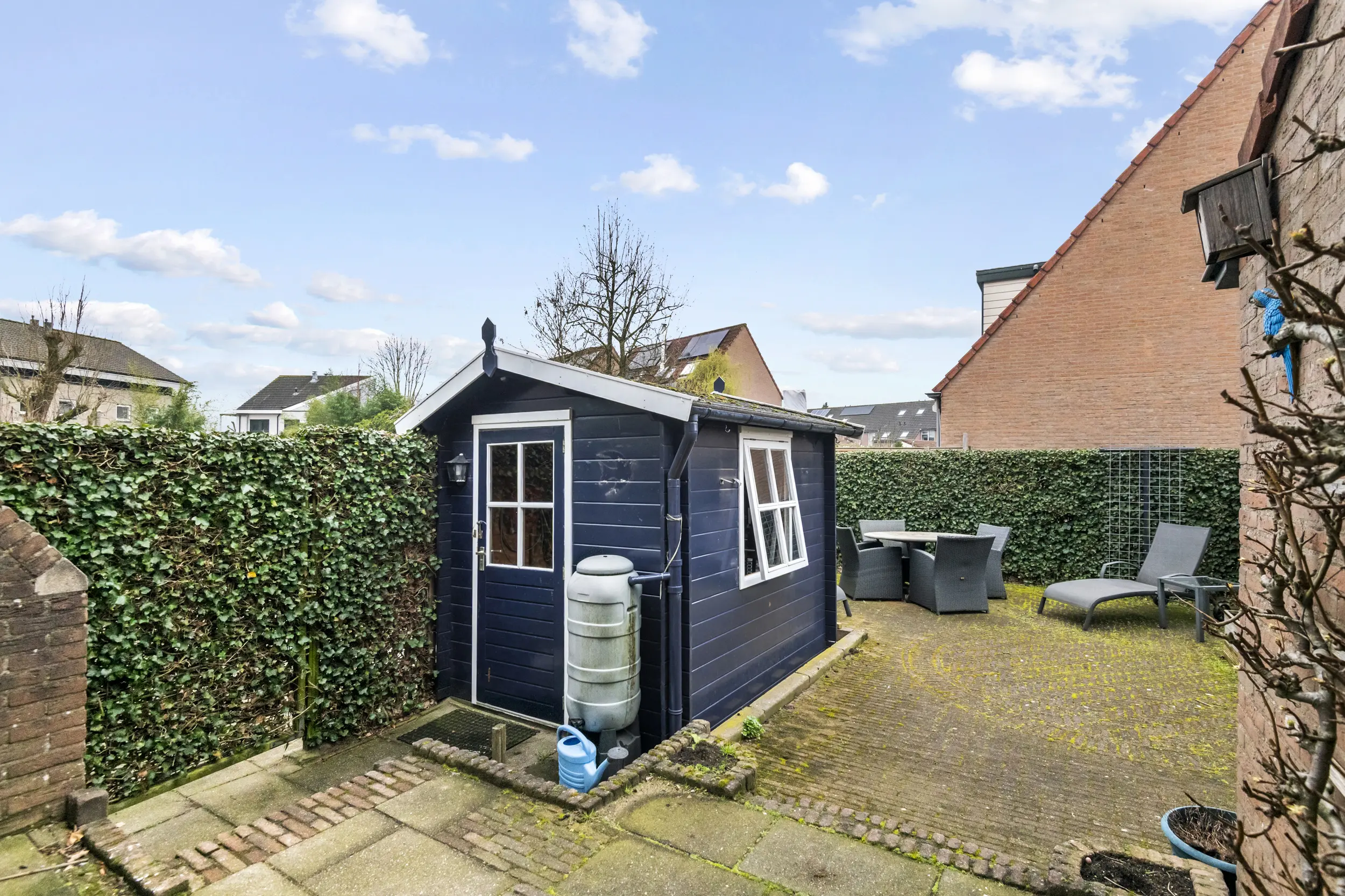 De woning beschikt over een voor-, zij- en achtertuin. De achtertuin is gelegen op het westen, waardoor u hier heerlijk kunt genieten van de middag- en avondzon. Dankzij de ligging en de hoekpositie biedt de tuin bovendien een fijne mate van privacy. In de tuin staat een vrijstaande houten berging van circa 5 m², ideaal voor het stallen van fietsen of tuingereedschap. Daarnaast beschikt de tuin over een achterom, wat extra praktisch is.