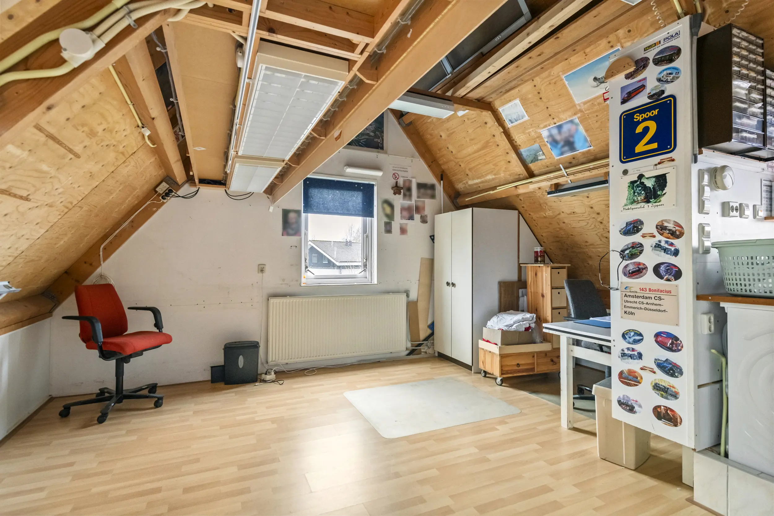 Via een vaste trap is de ruime zolderverdieping bereikbaar. Deze verdieping wordt momenteel gebruikt als werkkamer en bergruimte, maar biedt diverse mogelijkheden. Door de grootte van de ruimte kan hier bijvoorbeeld eenvoudig een extra slaapkamer, hobbyruimte of thuiswerkplek worden gerealiseerd.