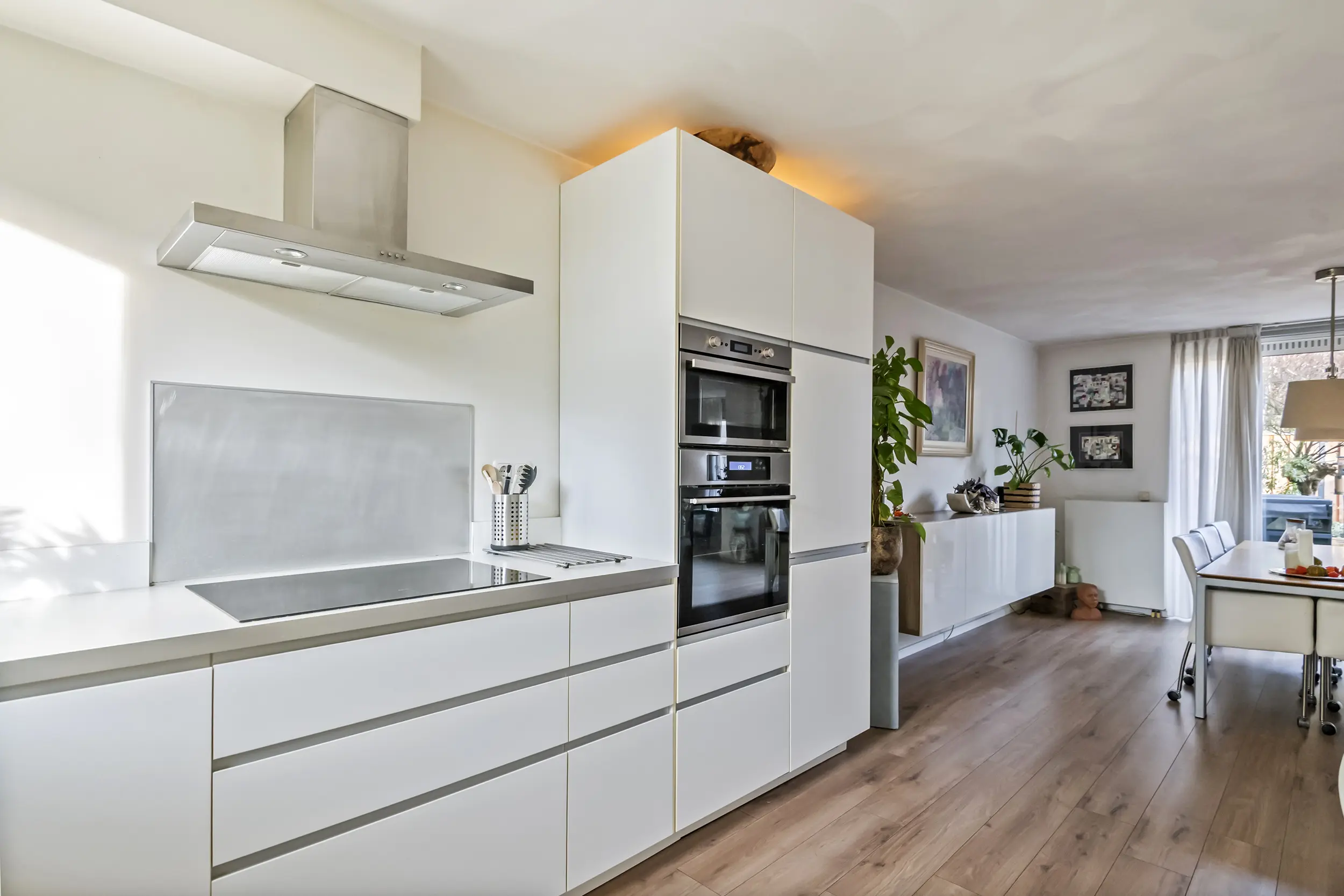 De open keuken sluit prettig aan op de woonkamer en is praktisch ingericht met volop kastruimte en moderne apparatuur. Geen poespas, maar een fijne plek waar dagelijks leven en gezelligheid samenkomen.